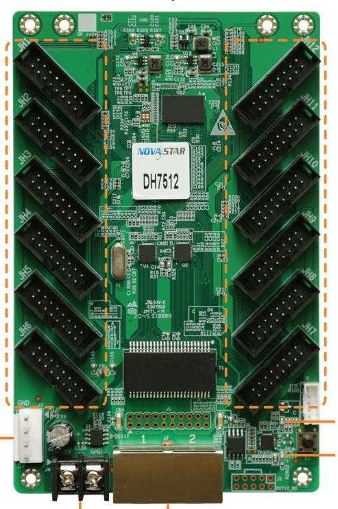 Được trang bị 12 cổng HUB75E tiêu chuẩn, cho phép kết nối linh hoạt với nhiều module LED khác nhau.